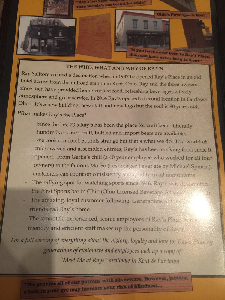 Ray's Place in Kent, Ohio is a casual American bar offering a wide variety of dishes with vegan and vegetarian options. The menu includes Smok'n Mondays with BBQ pulled pork sandwiches and drink specials, App It Up Tuesdays with discounted pints and appetizers, and Meatloaf & Wing Wednesdays. Customers rave about the delicious burgers, craft beer selection, and nostalgic atmosphere. The cheeseburger, poutine fries, and spicy shrimp are highly recommended. The friendly staff, quick service, and clean facilities add to the overall positive dining experience. Despite its popularity and busy atmosphere, Ray's Place remains a staple for both locals and visitors looking for a satisfying meal in a lively setting. Make sure to check out their daily specials and enjoy a memorable dining experience at Ray's Place.
